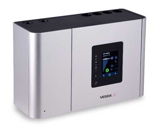 - VESDA VFT. Извещатель аспирационный сверхраннего обнаружения дыма, который способен обнаружить пожар на ранней стадии при различной концентрации дыма (от низкой до высокой). Диапазон чувствительности составляет от 0,001% до 20% затемнения/м. Дымовой датчик снабжен высокоэффективным роторно-лопастным вакуумным насосом с давлением 0,7 бар, а также имеет 5 релейных выходов с возможностью расширения. Предназначен для защиты помещений площадью до 1 500 м2.