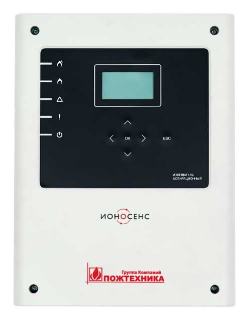 Аспирационные извещатели серии «ИОНОСЕНС» выполнены в унифицированном ABS пластиковом корпусе. Извещатель имеет блочную конструкцию, обеспечивающую удобство обслуживания с разграничением доступа и возможность крупно-узлового ремонта. В корпусе извещателя размещены воздушный канал с измерителем скорости воздушного потока, аэроионным измерителем оптической плотности среды и вентилятором, плата индикации и управления и коммутационная плата. Извещатели рассчитаны на установку на вертикальной плоскости. Воздухозаборное отверстие расположено на верхней стенке корпуса и рассчитано на подсоединение трубы с наружным диаметром Ø25 мм. Центр воздухозаборной трубы располагается на расстоянии 26 мм от плоскости крепления корпуса извещателя для возможности использования стандартных клипс крепления труб на стене. Выходное отверстие располагается на нижней стенке корпуса извещателя, оно рассчитано на установку адаптера для перехода на трубу с наружным диаметром Ø25 мм.